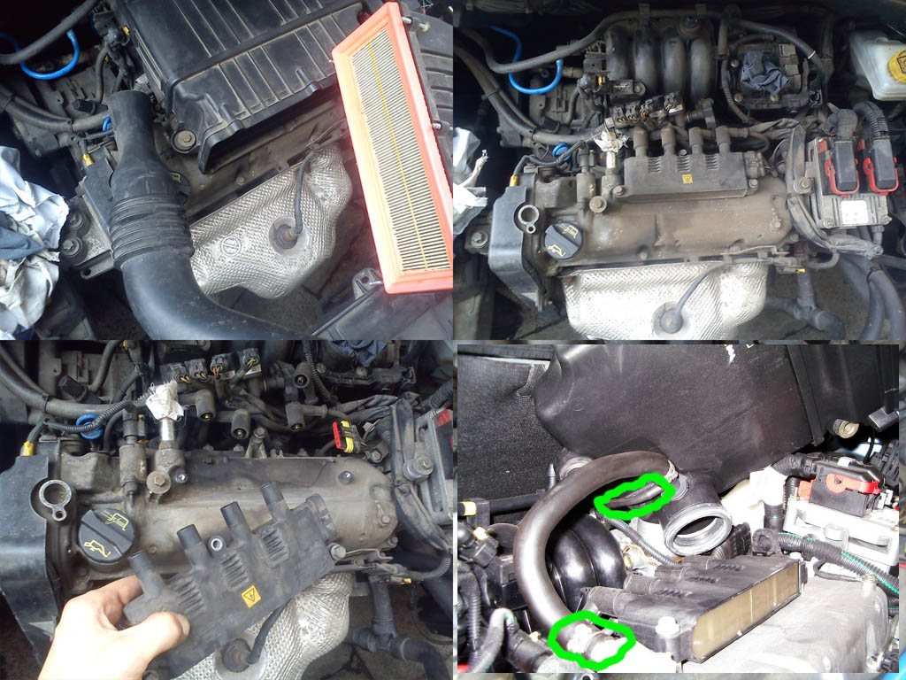 0. Disconnect the battery (after job is done, you will have to set date and time, that's it). Then remove air filter box (as a whole or check air filter too - six, 7 mm hex screws). There are two, 10 mm hex bolts holding it. Mind the rubber hoses (two: big and small one), disconnect them. Then remove coil-pack module (three, 10 mm bolts), undo all connectors.