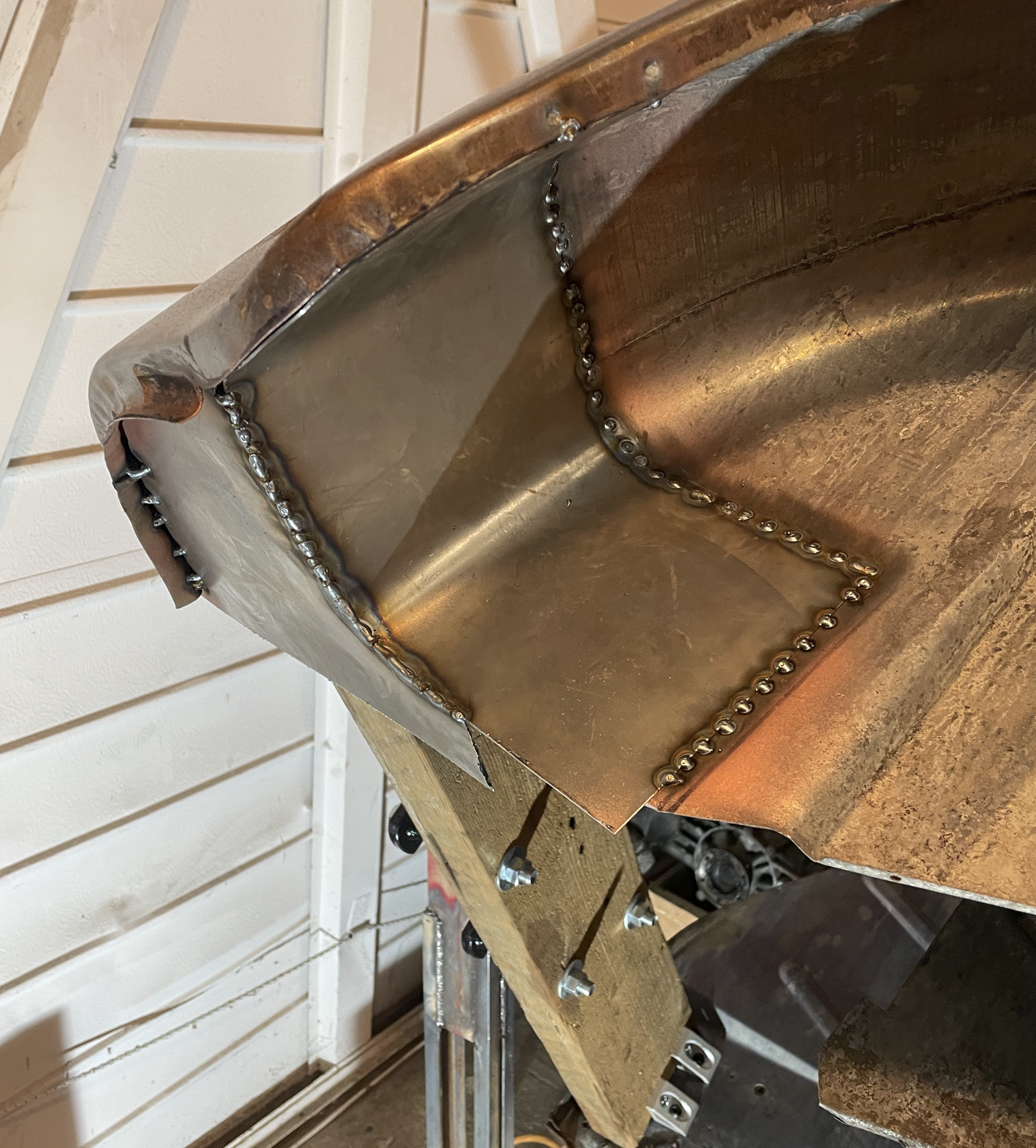 I bought the car in august 2022. Clearly my dog Marty is super excited about all the time i will be spending working on it, rather than going for walks. The car had spent alot of its life at the coast, so the rust is not ideal. This is my first body work project, so I dont expect it to be a show car. When i was planning this conversion, i carefully measured up where and how i could fit the (6) battery modules in the car. Most of the old Fiat conversion (mostly 500s in the UK it seems) use (3) tesla modules and place them under the bonnet and boot. The floors in this car need replacing, so i worked on a plan to place the batteries under the seats, just like modern EVs. It will keep the center of gravity low and give me space for other stuff up front and have storage in the back. Here is some cad exploration: You can see the battery module outline in orange.
