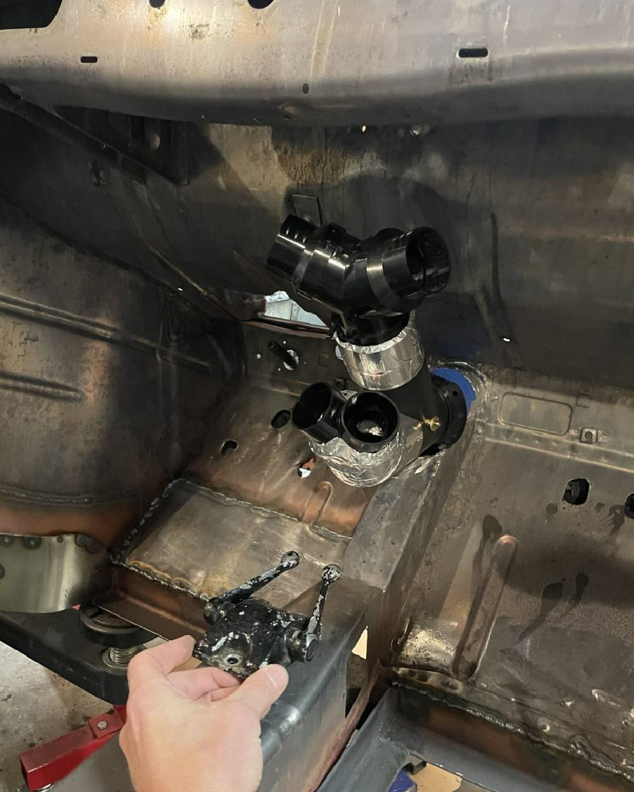 I also built a makeshift rotisserie out of harbor freight engine stands. I cant flip the car over completely, but i can rotate it 90deg either direction.