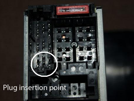 Now this is where the problem becomes apparent - The multi coloured connector block occupies all available slots on the back of the head unit...So there's no place to plug the nice new lead in...
