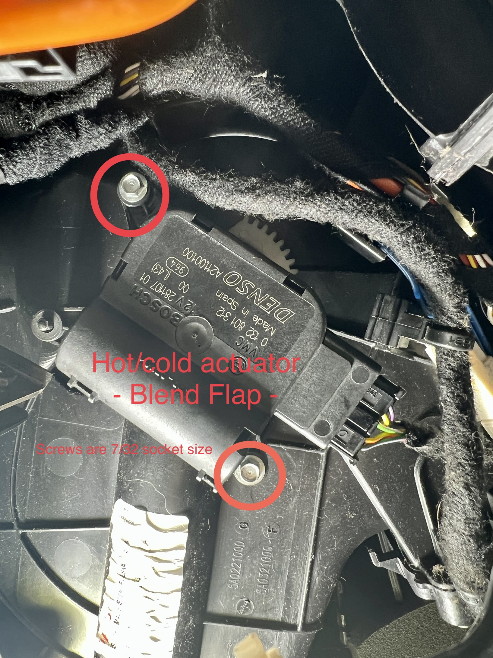 Before attempting to repair the blend flap pin, set your climate control to COLD so that the actuator is at its “forward” limit.