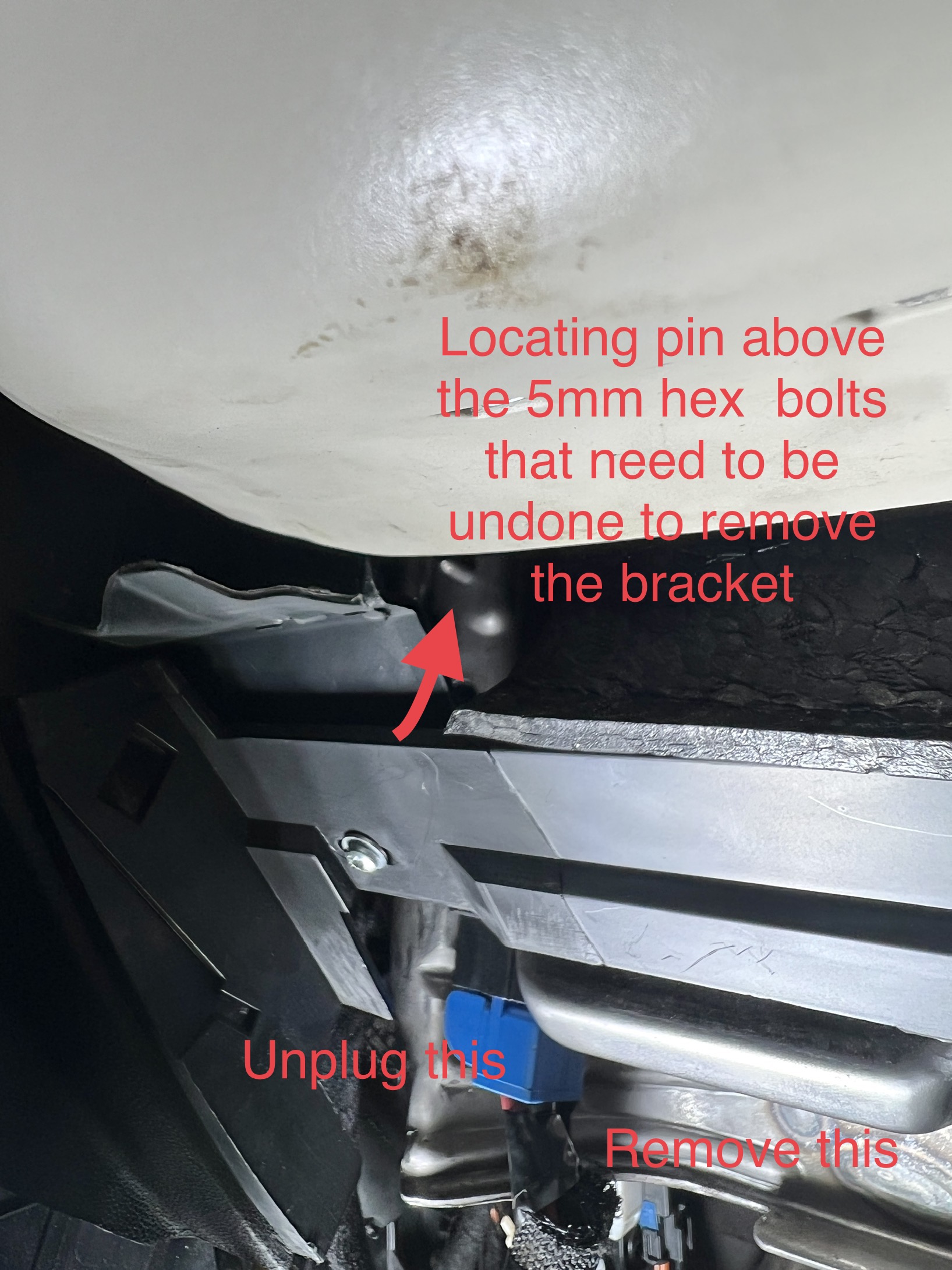 14. Manoeuvre large bracket out; it has locating pins on each side so it wont just “pull down”