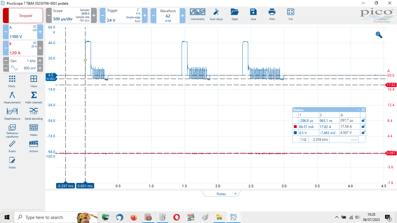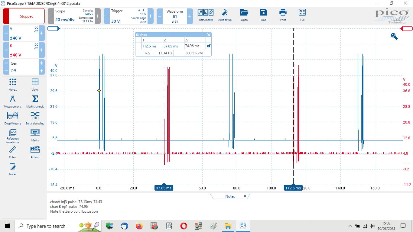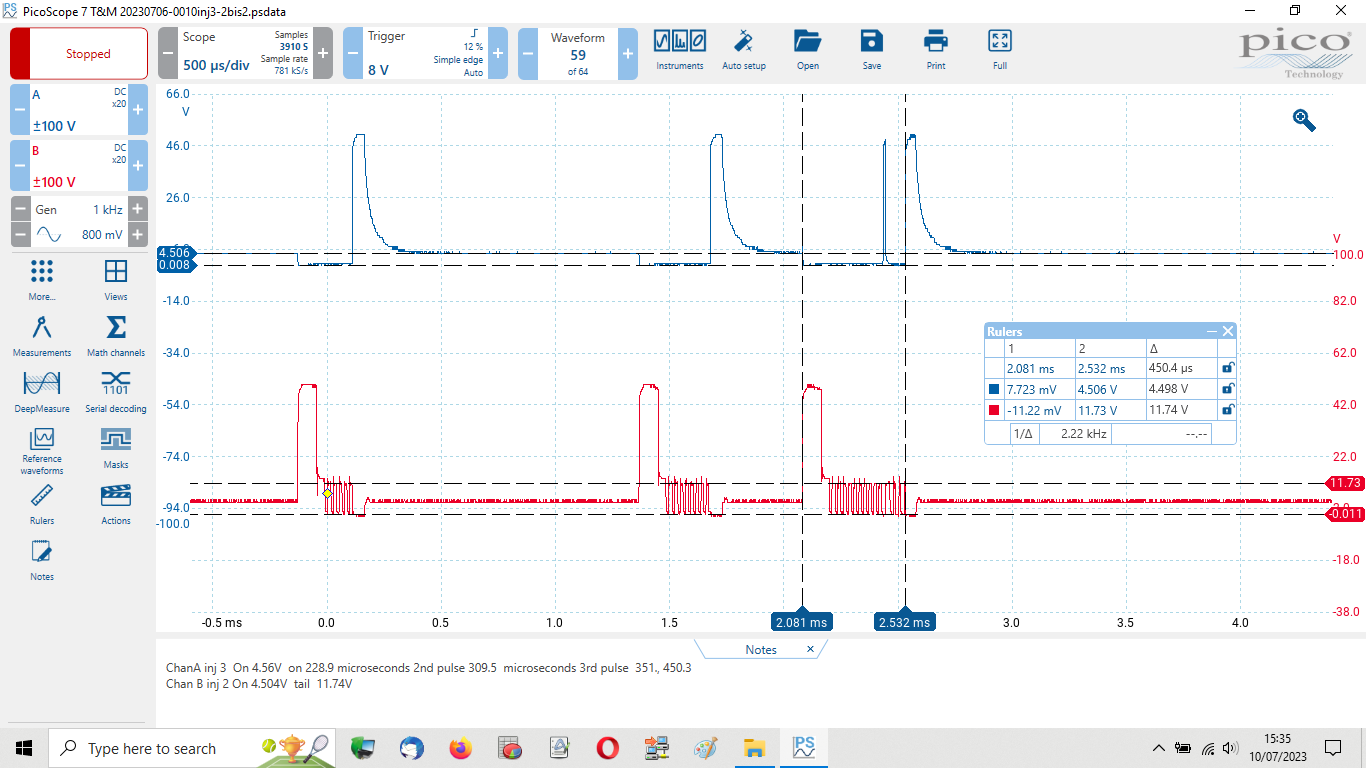 The picoscope is attached to laptop via USB. The injectors are back probed.