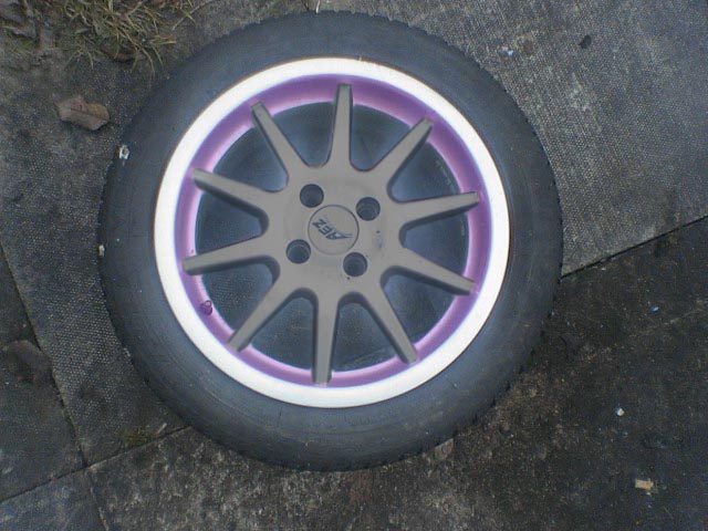 So I've bought some diffeent ones and was thinking about colour. Silver doesn't suit, anthracite would but is becoming the chav colour of choice round here, colour coded would be a bit much. So I was thinking pinky-purple rims (to match the car) and black spokes, with pinky-purple centre cap. Or does anyone have any better ideas?