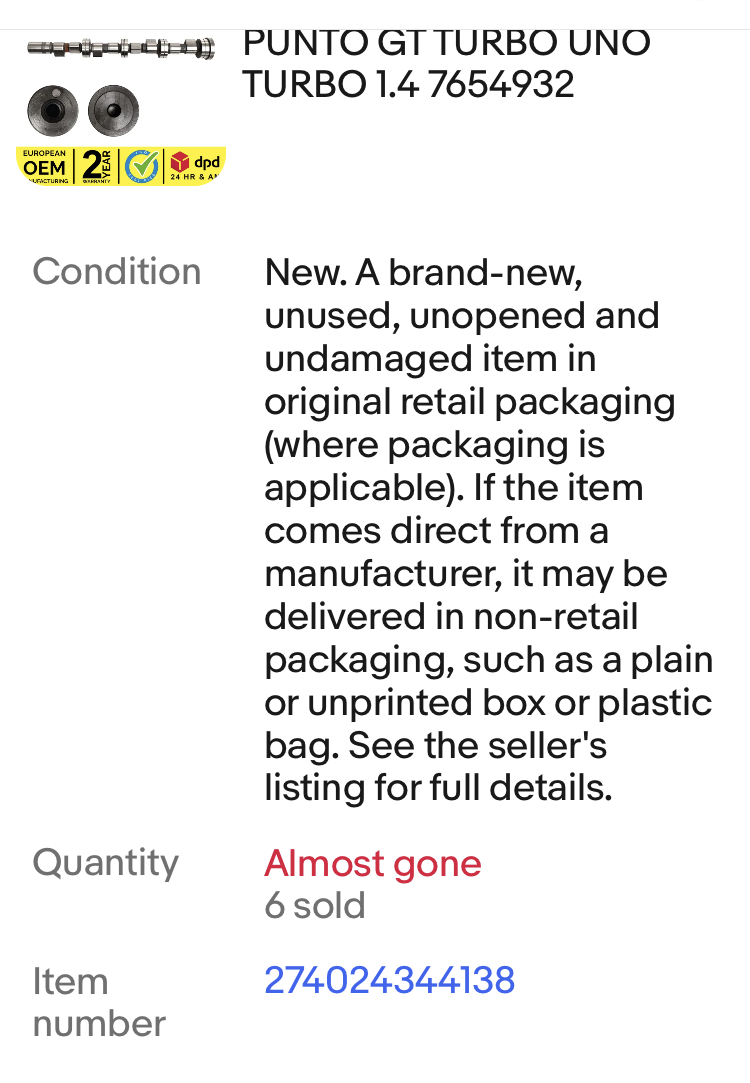 My dads punto gt turbo needs a new cam, but we can't find an OEM unit anywhere. We started looking for performance cams, and only ones that are in our budget are these two, and they are for a 128, so for a non turbo engine.