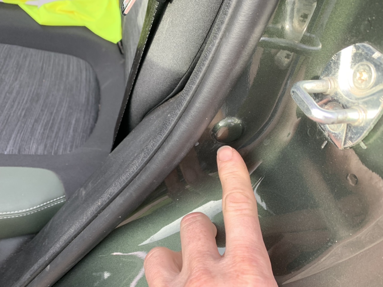 Posted same photo twice and can’t edit from phone - two places on front door frame: one by the latch (as with the rear door, pictured) and one at the bottom.