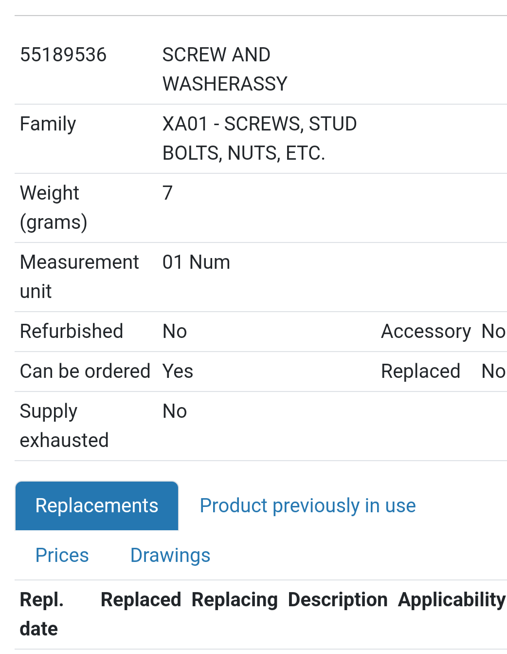 Shows this part number